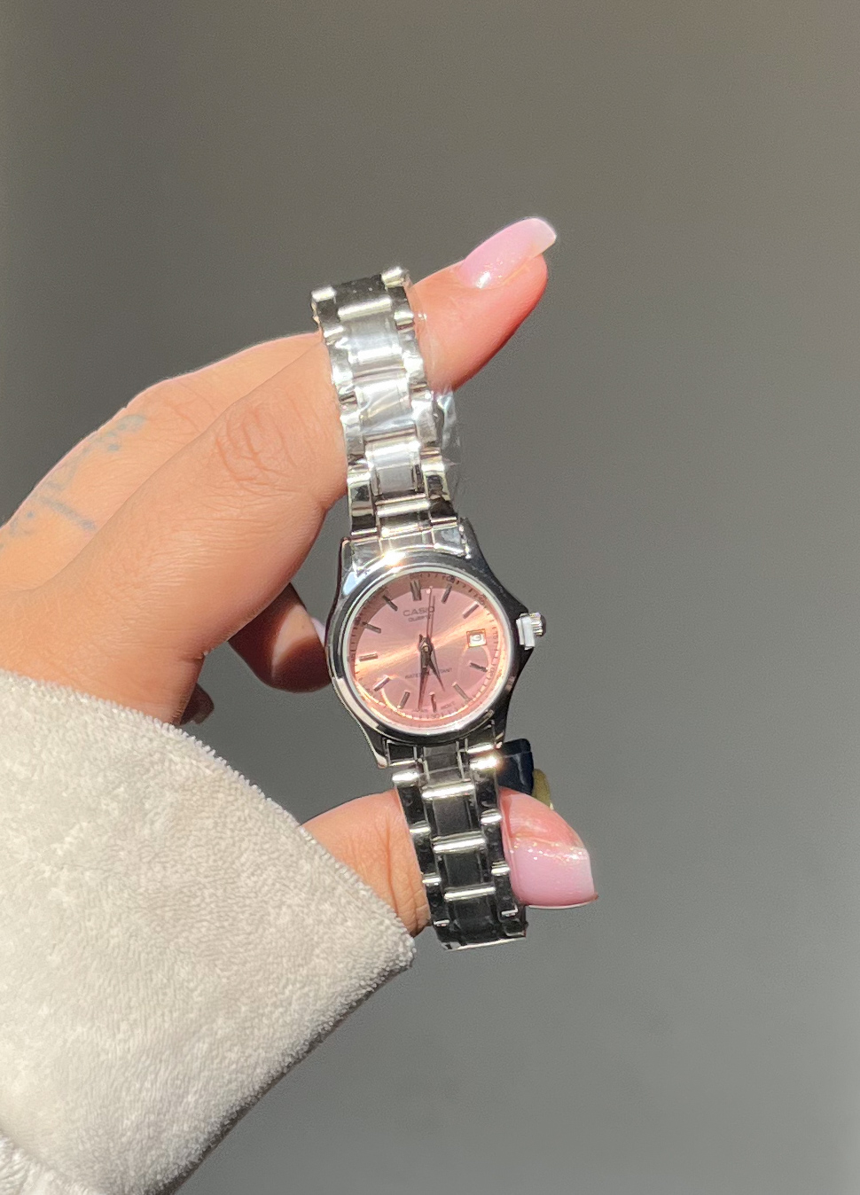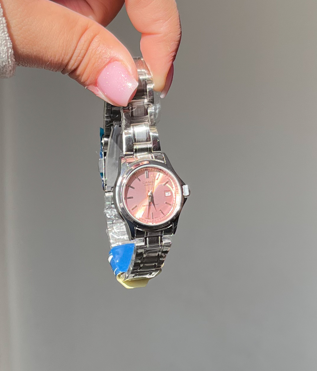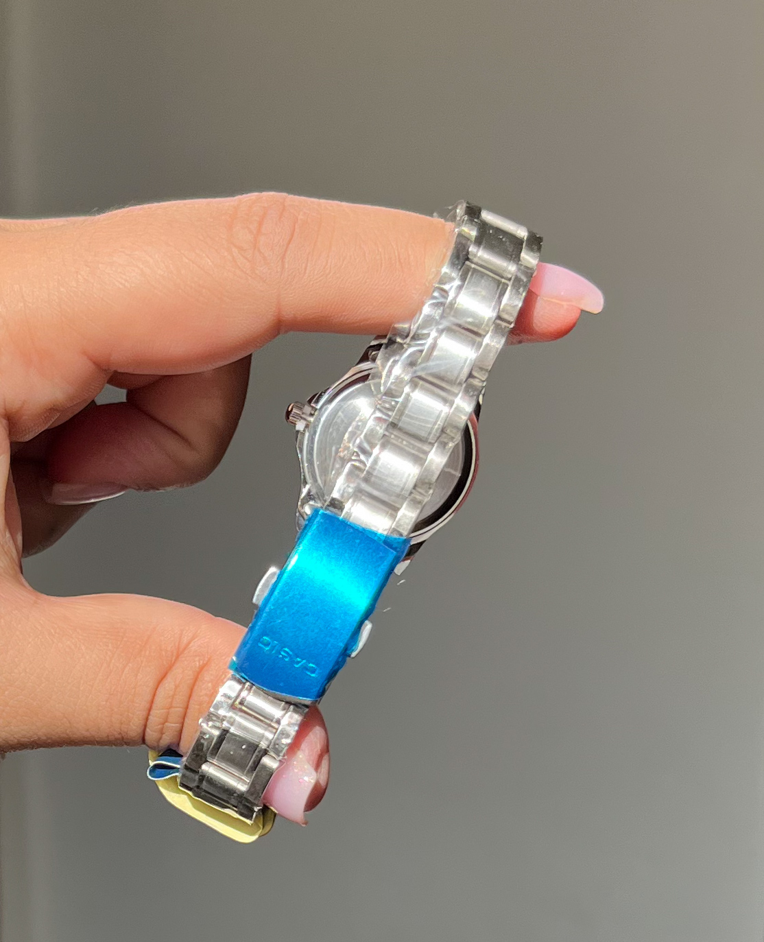 ساعت کاسیو زنانه با رنگ صفحه ی خاص🥹: بندوبک این ساعت استیله ابکاری درجه یک شده،باتری ساعت قشنگمون قابل تعویضه ،بندساعت قابلیت کوتاهی دارد